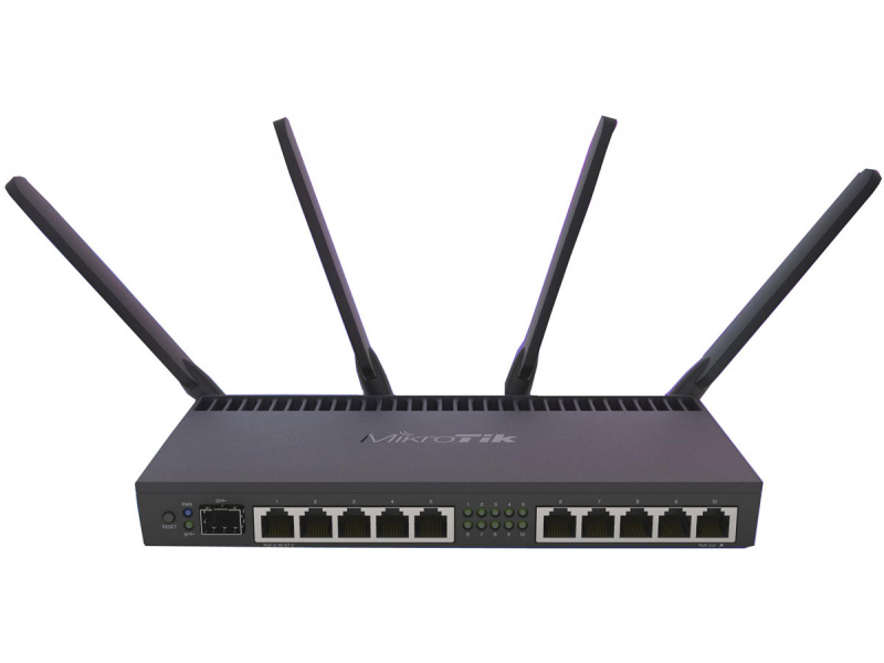 Powerful 10xGigabit port router with a Quad-core 1.4Ghz CPU, 1GB RAM, SFP+ 10Gbps cage, dual band 2.4GHz / 5GHz 4×4 MIMO 802.11a/b/g/n/ac wireless and desktop case.